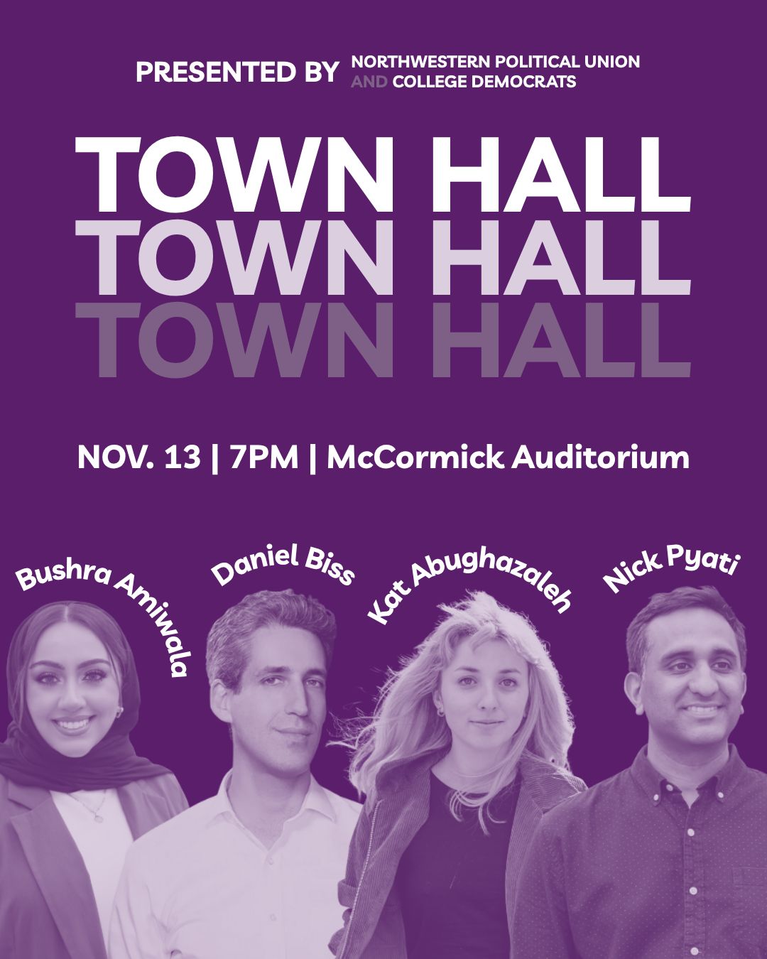 Political Union and College Democrats are happy to announce our fall speaker event, a town hall for candidates running to replace Jan Schakowsky as IL-09’s congressperson. Candidates such as Daniel Biss, Kat Abughazaleh and more will make their appeal to voters on Thursday, November 13th at 7pm in McCormick Auditorium. Fill out this form to RSVP and submit questions!